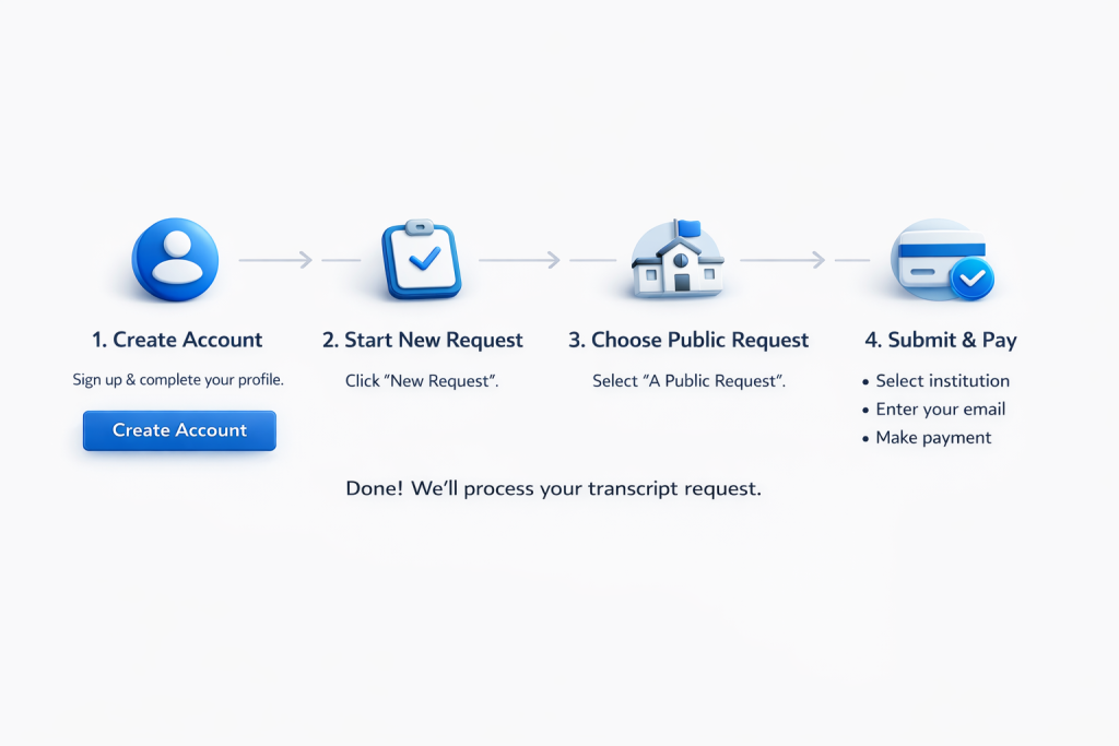 No institution account? No problem. You can still request your transcript easily using our Public Request system.